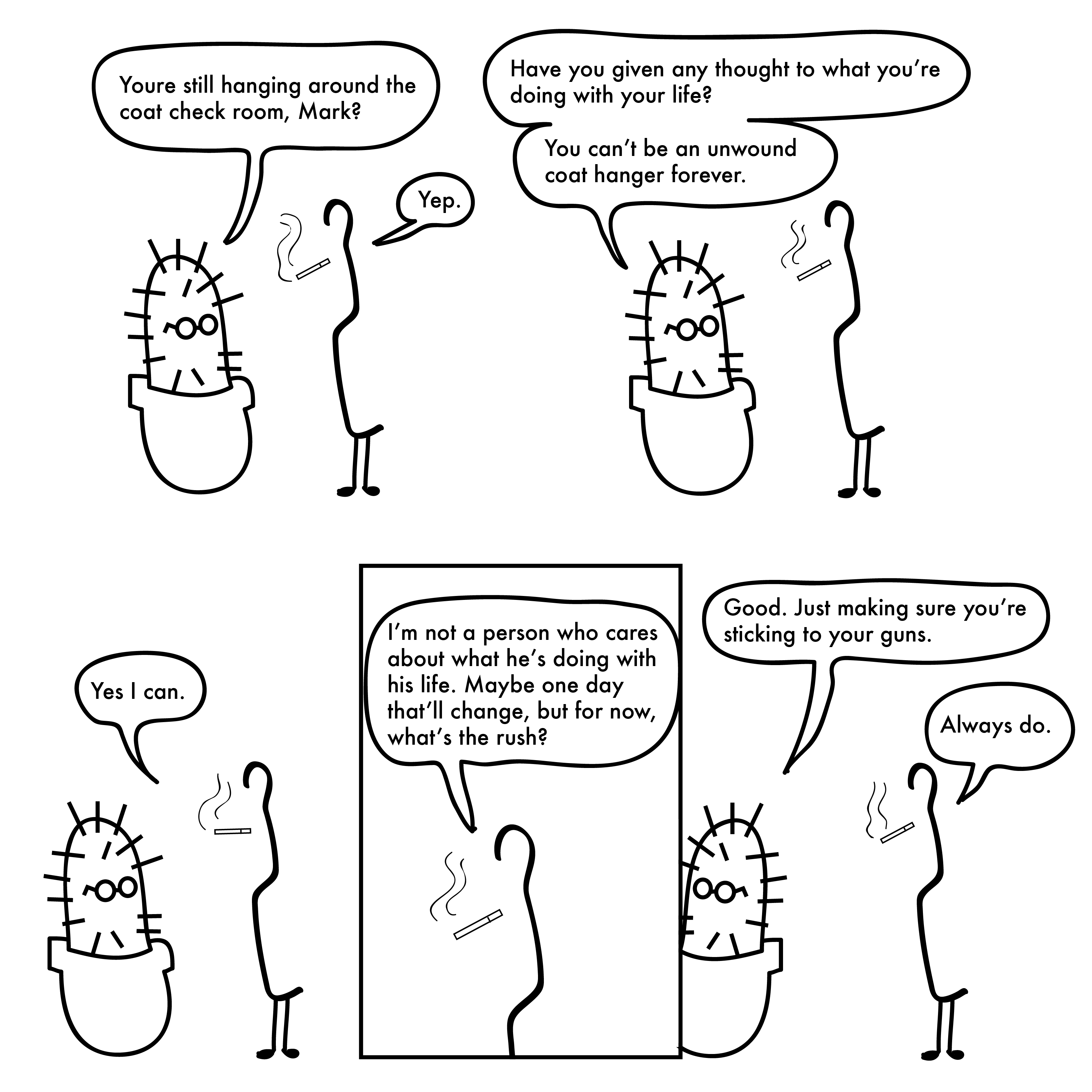 Tagged cartoon, cartoons, coat checkers, coat hangers, comic, comics, webcomic, webcomics, work